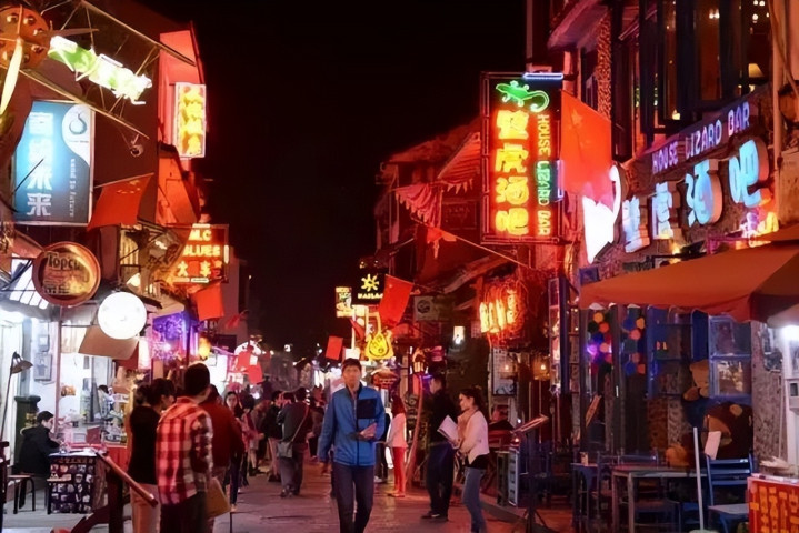 值得一说的是,西街是异邦东谈主在中国最密集的一条街,每年来这里居住、逍遥的异邦东谈主相当于这里常住东谈主口的3倍,中西文化在这里碰撞,更显融会西街的万种风情。