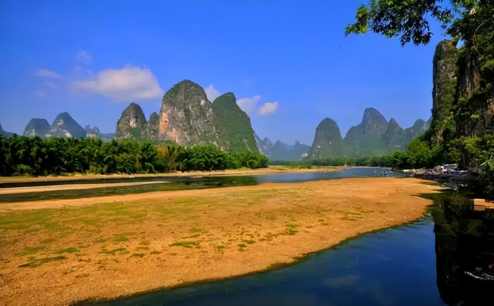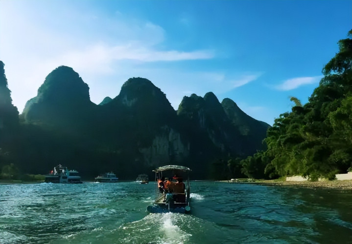漓江全程最具代表性的景不雅,当属黄布倒影。这里是漓江精华中的精华,船过画山,江面广泛,水平如镜,青峰倒影,好意思不堪收,“分明看见青山顶,船在青山顶上行。”