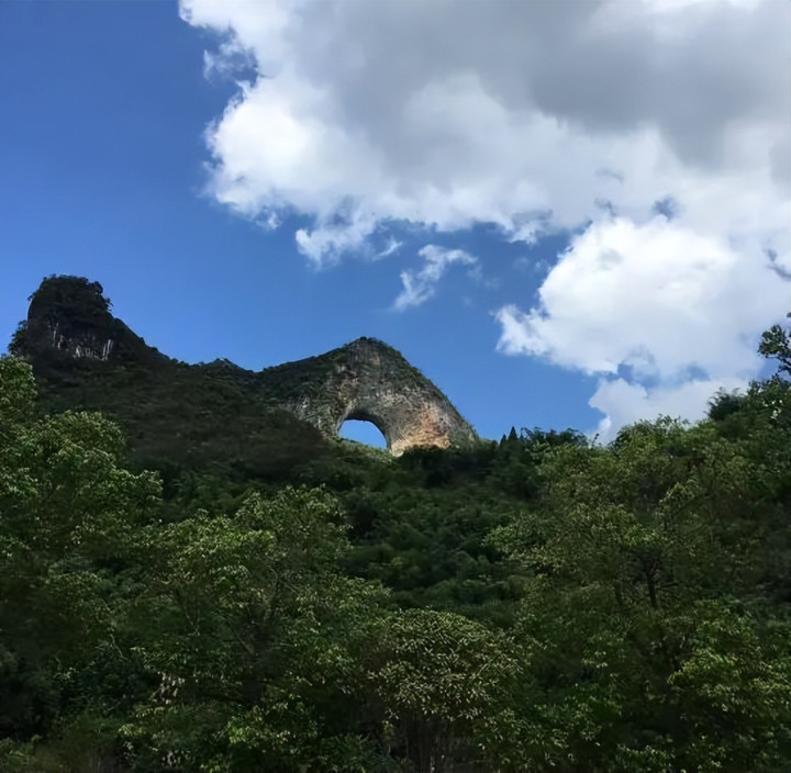 月亮山自成一副傲然自强的形貌,和周围群山造成了一个谐趣的画面。登上山顶,不错鸟瞰阳朔全景,登高望阳朔山水,别有一番风度。