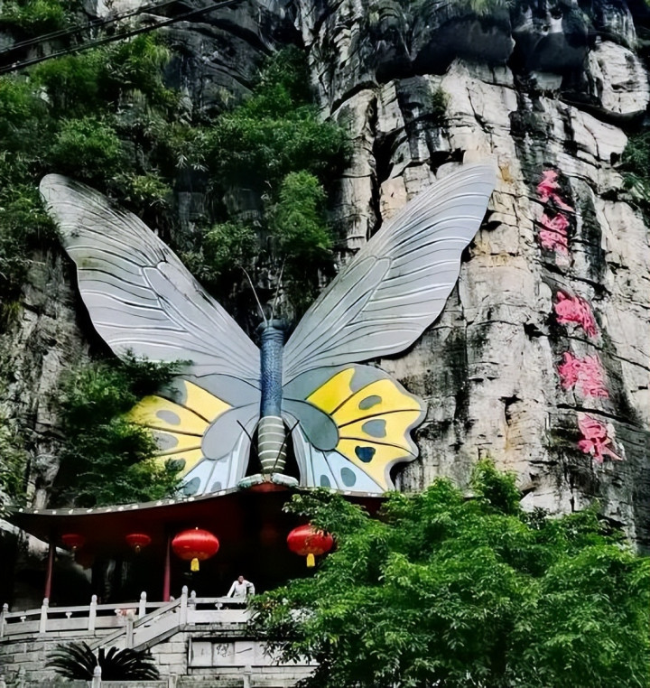 再往前,道路的第二个景点则是蝴蝶泉,因洞中有一处看似蝴蝶的钟乳石,又有泉水流出,因此得名蝴蝶泉。